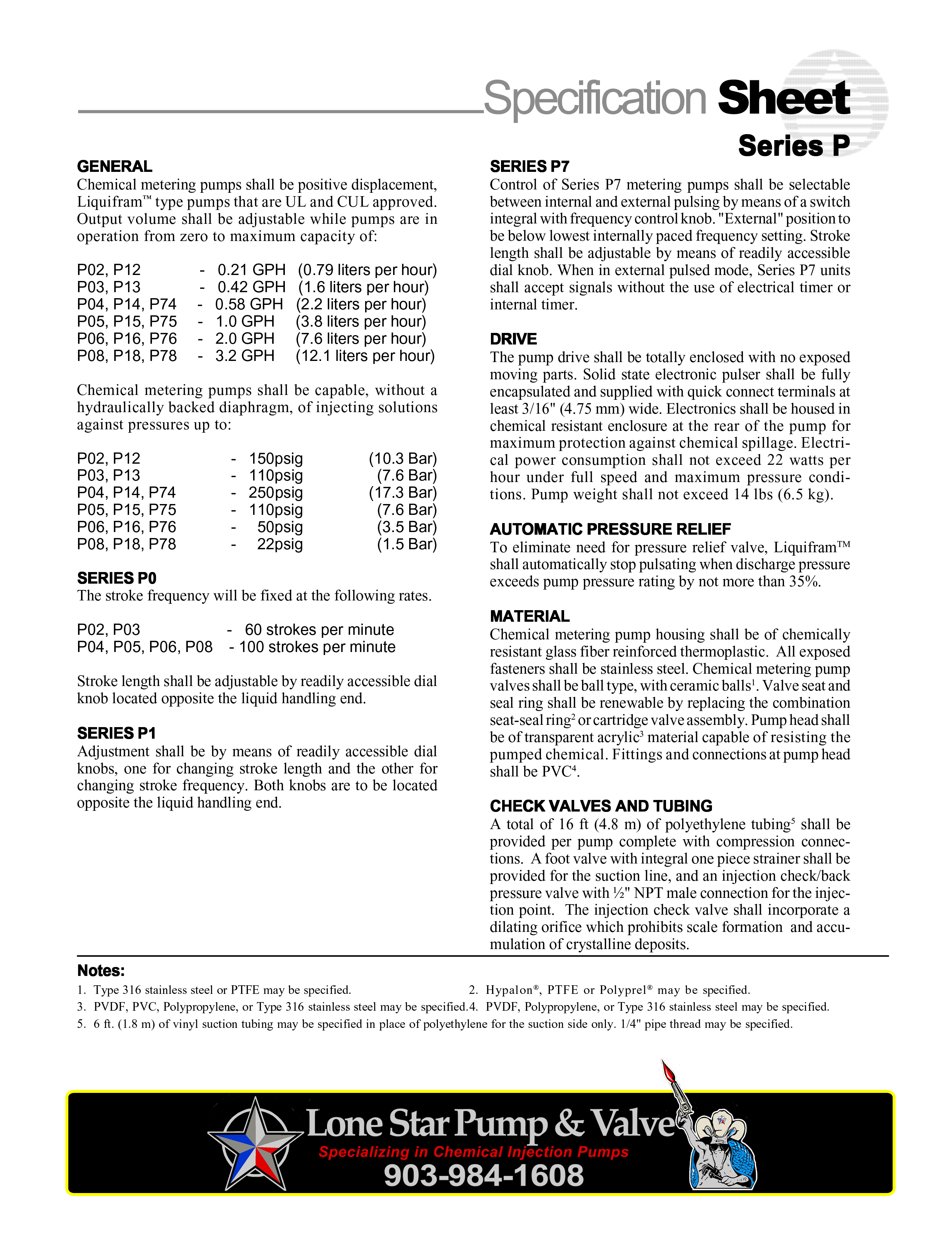 SERIES P CHEMICAL METERING PUMPS